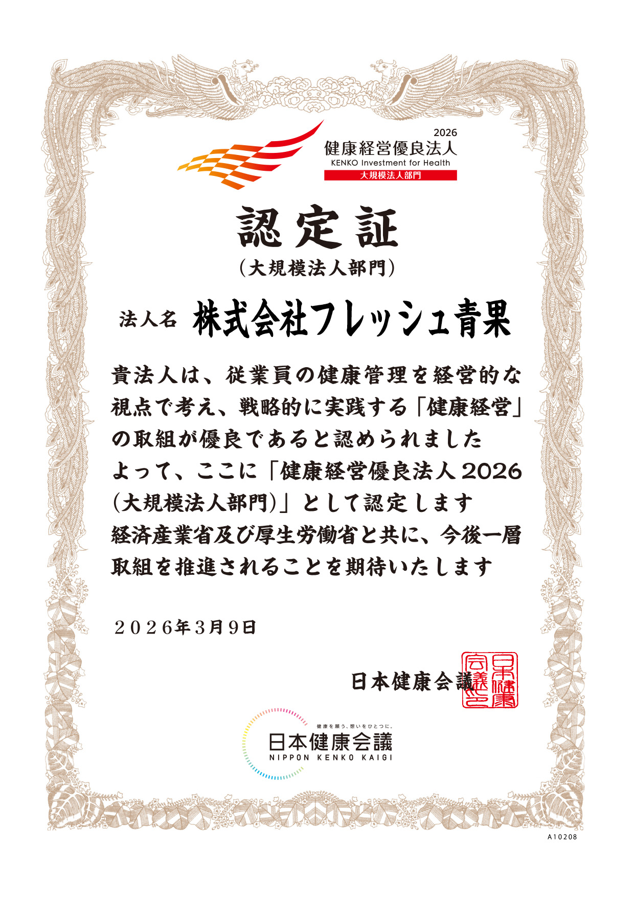 この度、経済産業省より「健康経営優良法人2026(大規模法人部門)」として認定をいただきました。